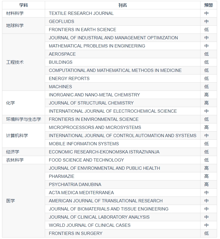 [期刊目录]中科院发布2023年度《国际期刊预警名单(试行)》